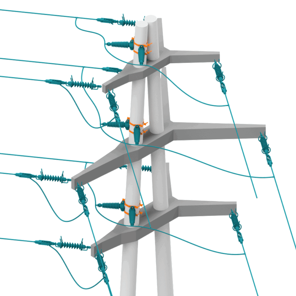 Um die neue Leitung sicher und flexibel am Mast befestigen zu können, entwickelten wir eine universell einstellbare Konstruktion für die Befestigung der Stützisolatoren. Diese erlaubt eine Anpassung an unterschiedliche Mastdurchmesser und gewährleistet eine einfache Montage. Das 3D-Modell ermöglichte es, alle sicherheitsrelevanten Abstände darzustellen und zu auch Varianten zu prüfen. Die Materialwahl wurde fachmännisch definiert, um Korrosion und Beeinträchtigung der Mastkonstruktion zu schützen.