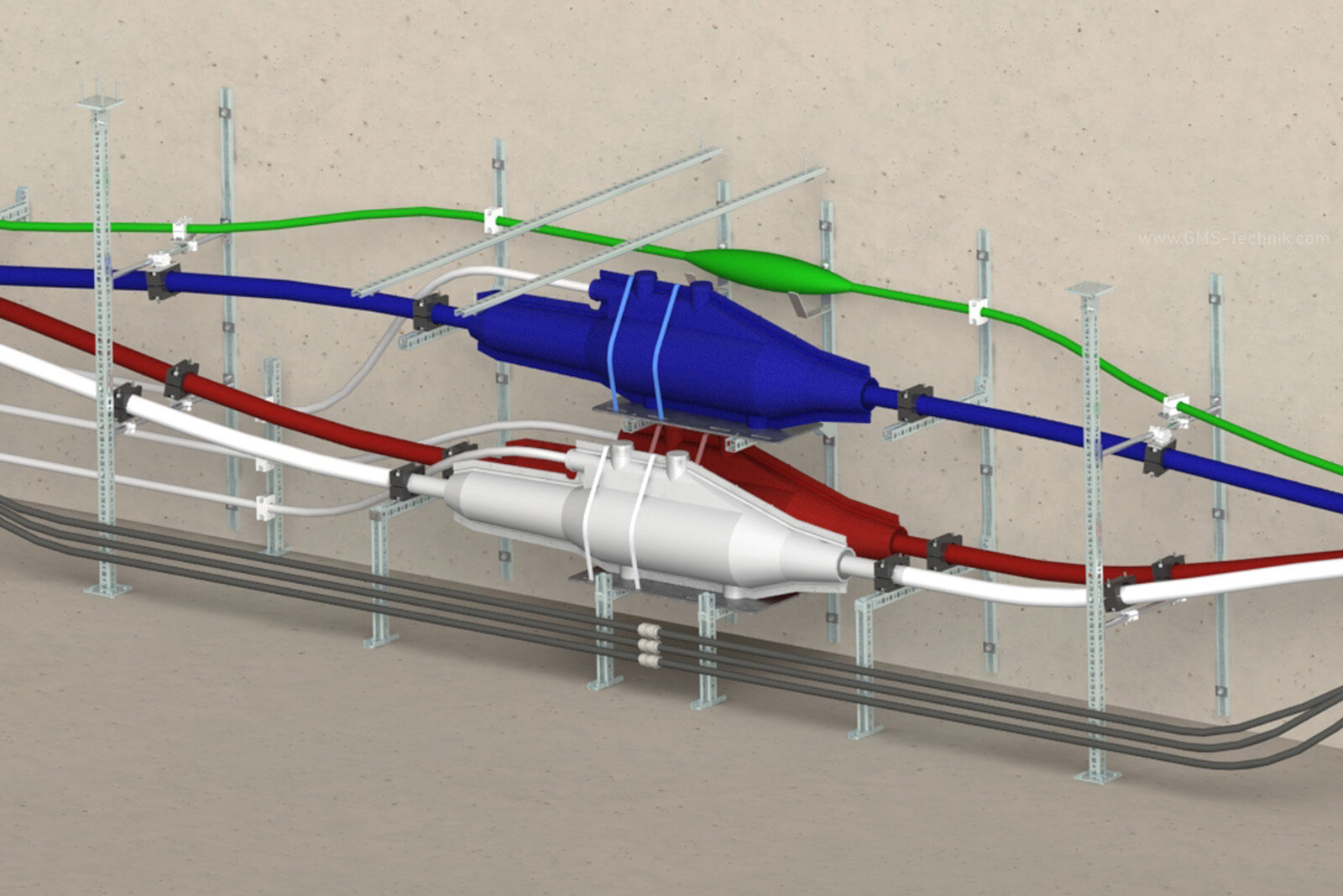 Im Rahmen der Kabelerneuerung mussten mehrere Muffenschächte neu konzipiert und ausgerüstet werden, die sich in Bauweise und Ausführung voneinander unterscheiden. Die teils sehr unterschiedlichen Bauweisen brachten variierende Randbedingungen und vielfältige Herausforderungen mit sich:
